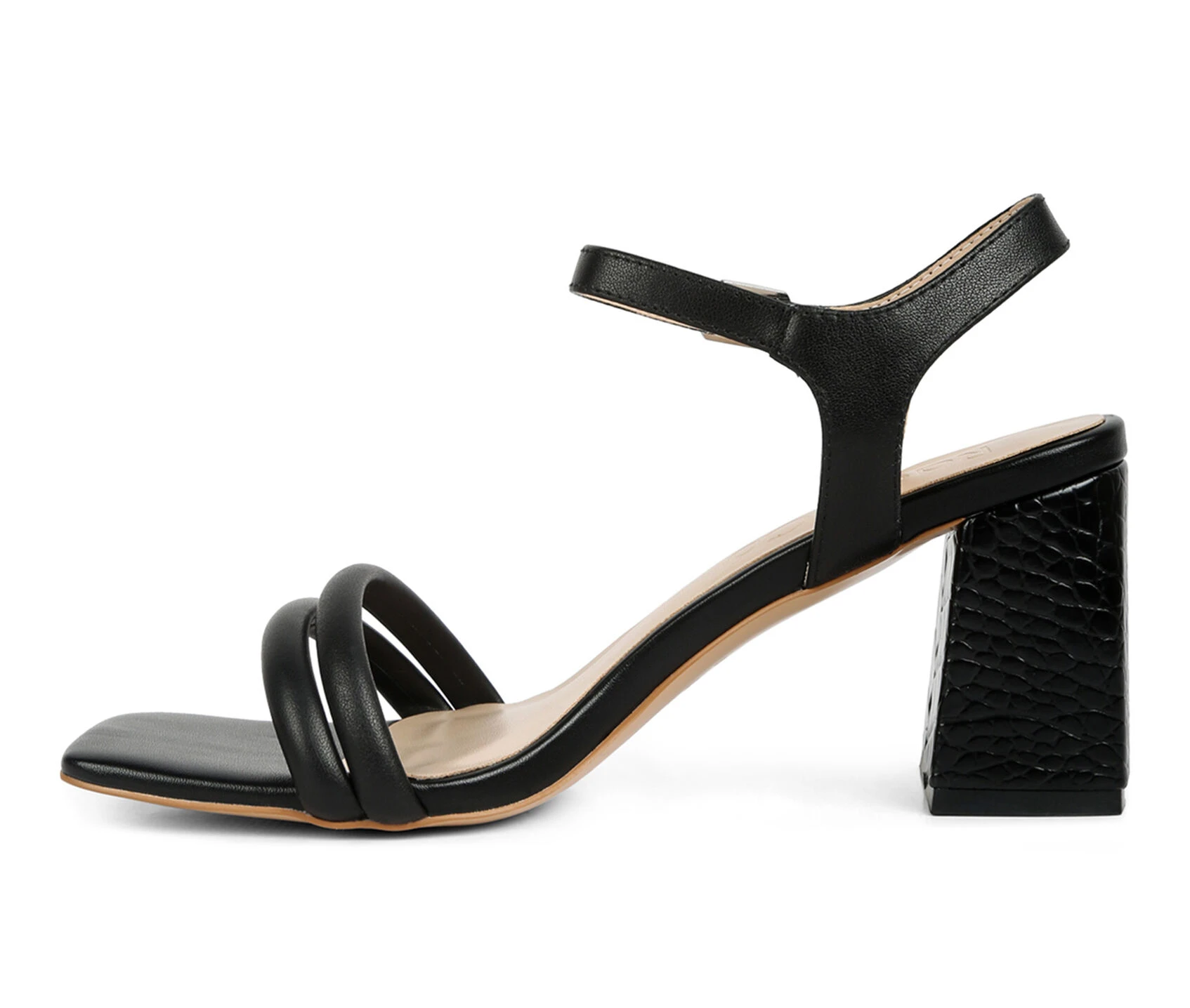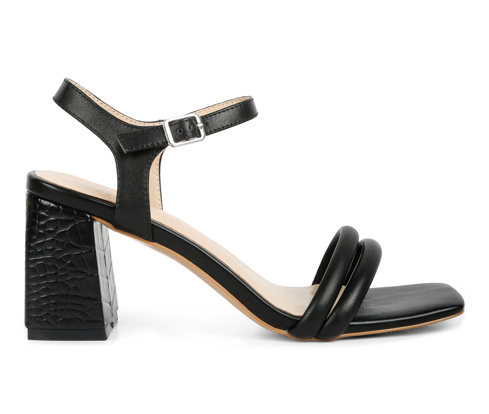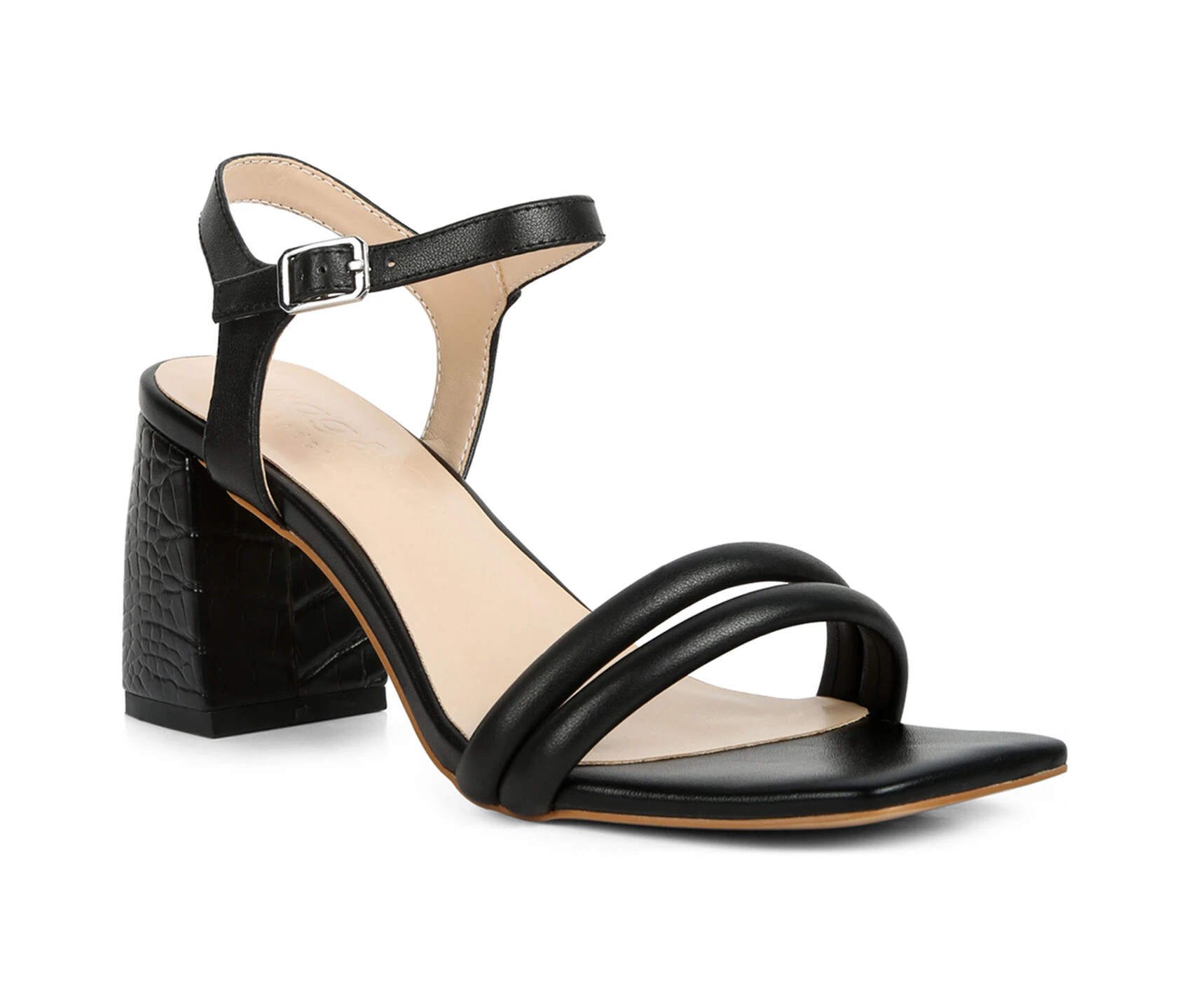 - Looking to add some glamour to your boring outfit? Look no further, our Ankle Strap Block Heel Sandals is just the answer. These women sandals come with an ankle strap detail and a lightly padded insole for super ease and comfort. An open square toe gives it a stylish look. Pair these women heels with skinny jeans or a dress and be the talk of the town.