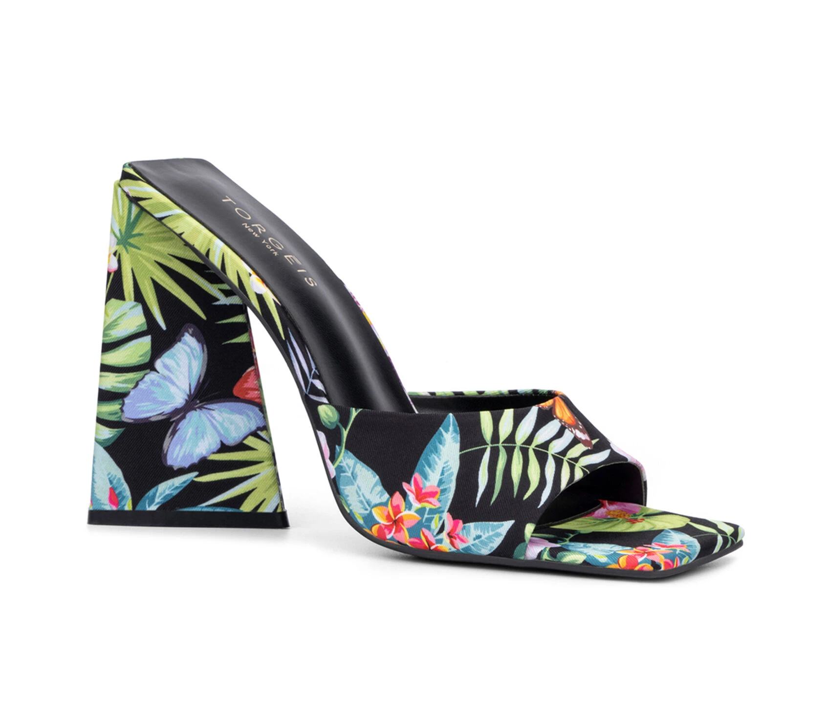 - Paradise sandals for an exotic girl like you. Open toe block high heels with tropical pattern. Where wild meets elegance.