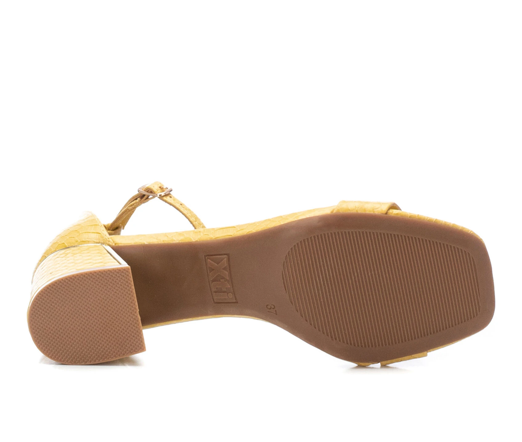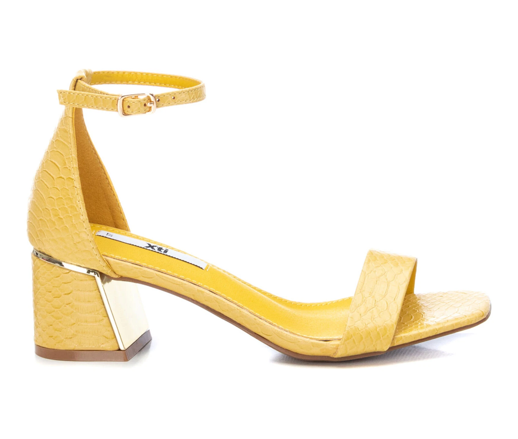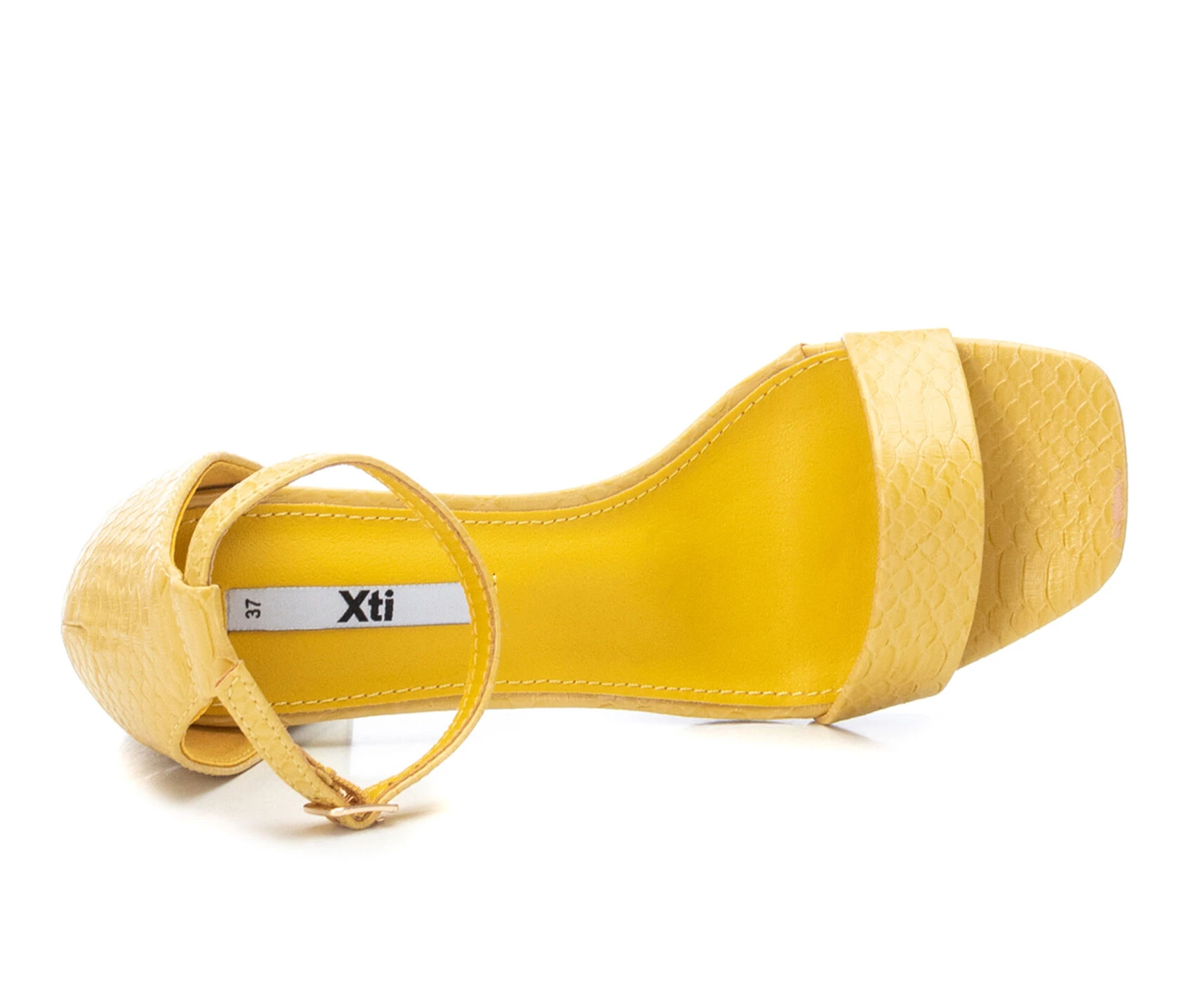 - Women’s Heel Sandals by Xti. Take your style to the next level with Xti Shoes! These 2.3 in high embossed sandals are the perfect blend of casual and comfort. Strap with metallic buckle closure. Non-slip rubber sole. This model has been certified vegan by the worldwide organization PETA.