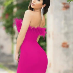 A bodycon babe! She features an all over ruched fabrication, Halter cowl neck tie fastening and sheer long bell sleeves. She looks amazing when paired with your go to heels and jewelry.